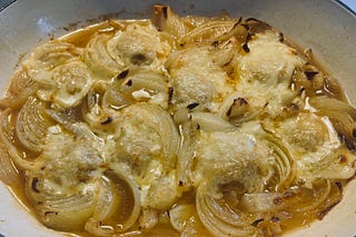 French-Onion-Soup Style Braised Onions with Matzoh Balls
